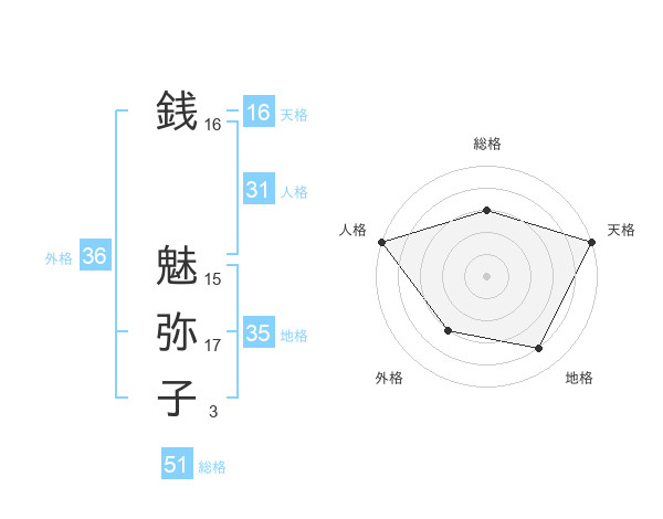 銭 魅弥子さんを姓名の画数から五運を鑑定