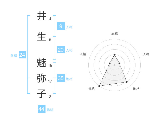 井生 魅弥子さんの総格は44画の2点!