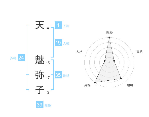 天 魅弥子さんの外格は24画の5点!