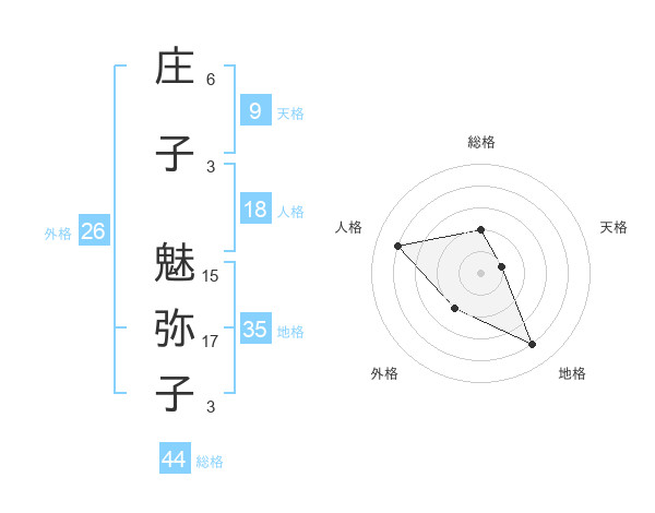 庄子 魅弥子さんを姓名の画数から五運を鑑定