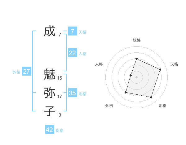 成 魅弥子さんの外格は27画の3点!