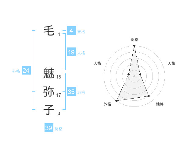 毛 魅弥子さんを姓名の画数から五運を鑑定