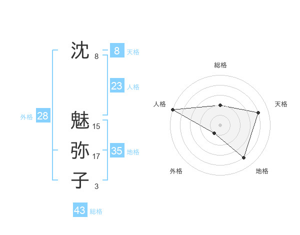 沈 魅弥子さんを姓名の画数から五運を鑑定