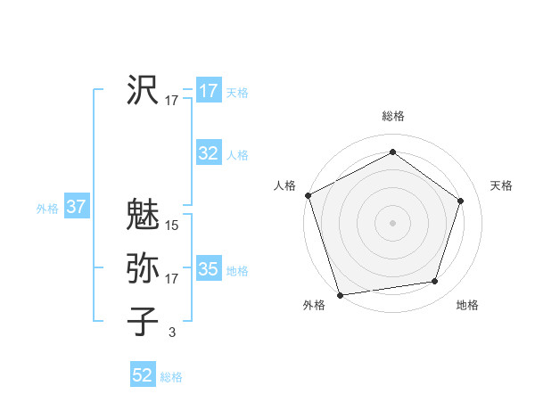 沢 魅弥子さんを姓名の画数から五運を鑑定