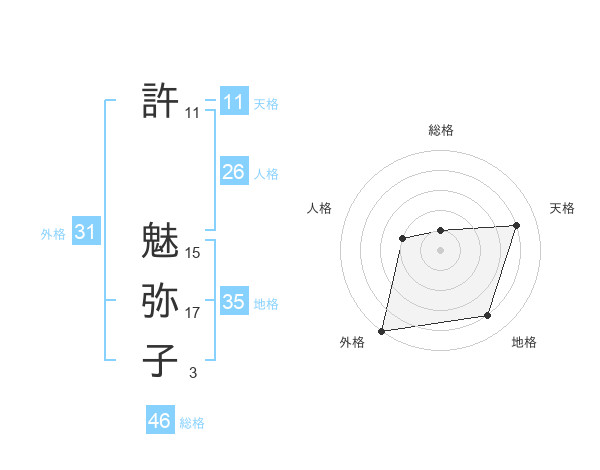 許 魅弥子さんを姓名の画数から五運を鑑定