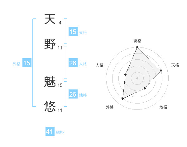 天野 魅悠さんを姓名の画数から五運を鑑定
