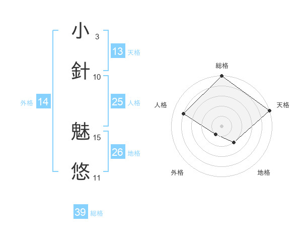 小針 魅悠さんを姓名の画数から五運を鑑定