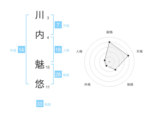 川内 魅悠さんを姓名の画数から五運を鑑定