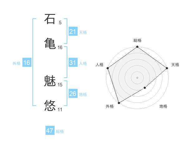 石亀 魅悠さんの天格は21画の5点!