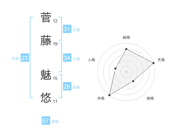 菅藤 魅悠さんの総格は57画の4点!