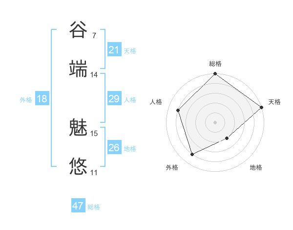 谷端 魅悠さんの総格は47画の5点!