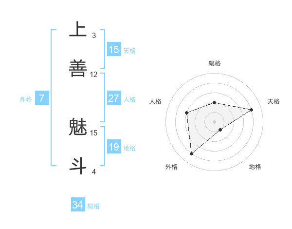 上善 魅斗さんを姓名の画数から五運を鑑定
