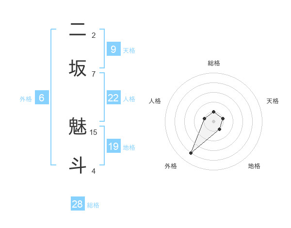 二坂 魅斗さんの総格は28画の1点!
