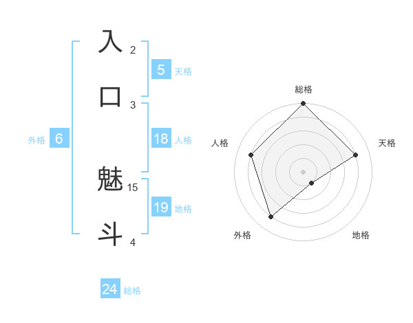 入口 魅斗さんの総格は24画の5点!