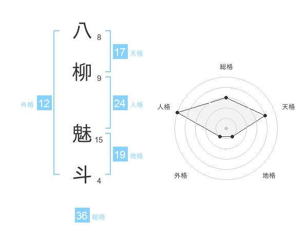 八柳 魅斗さんの天格は17画の4点!
