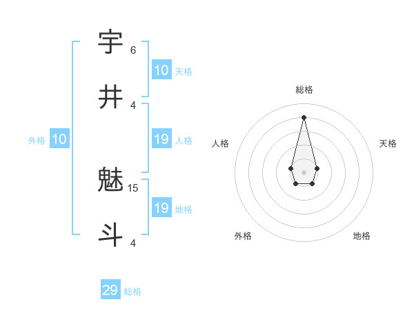 宇井 魅斗さんの総格は29画の4点!