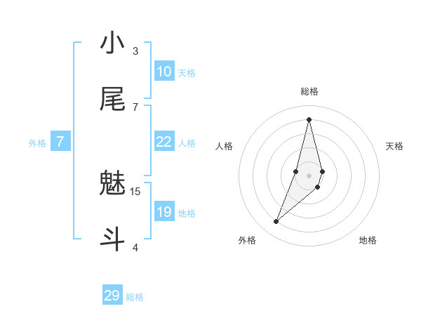 小尾 魅斗さんの総格は29画の4点!