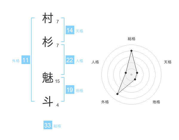 村杉 魅斗さんを姓名の画数から五運を鑑定