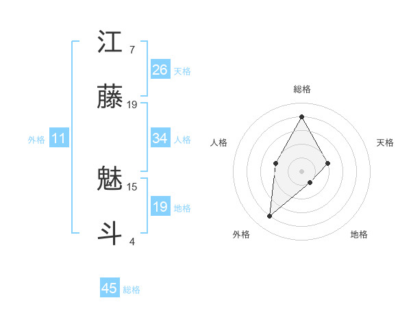 江藤 魅斗さんの総格は45画の4点!