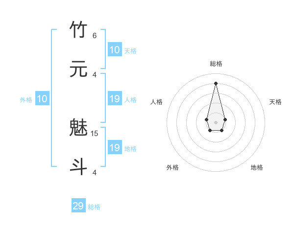 竹元 魅斗さんの総格は29画の4点!