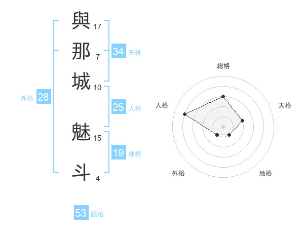 與那城 魅斗さんの総格は53画の3点!