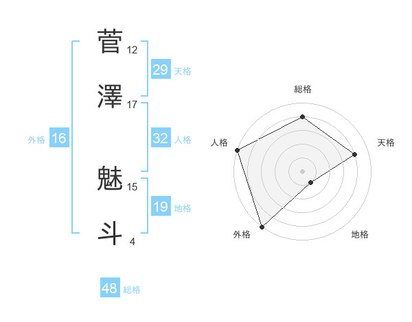 菅澤 魅斗さんの天格は29画の4点!