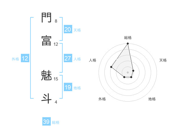 門富 魅斗さんの総格は39画の5点!
