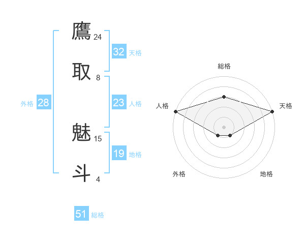 鷹取 魅斗さんの天格は32画の5点!