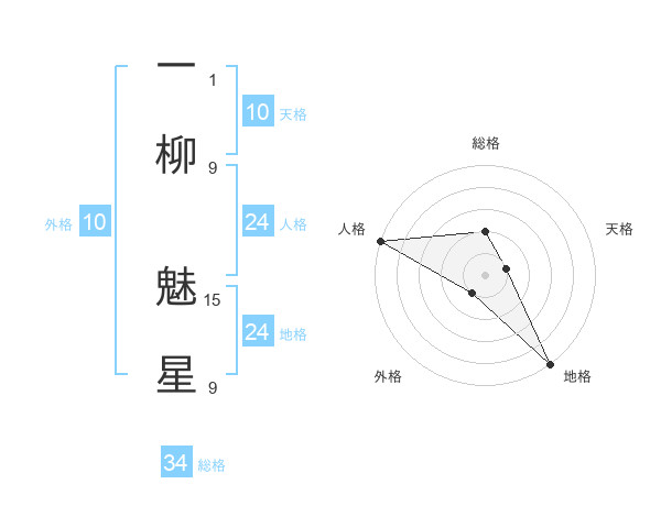 一柳 魅星さんの総格は34画の2点!