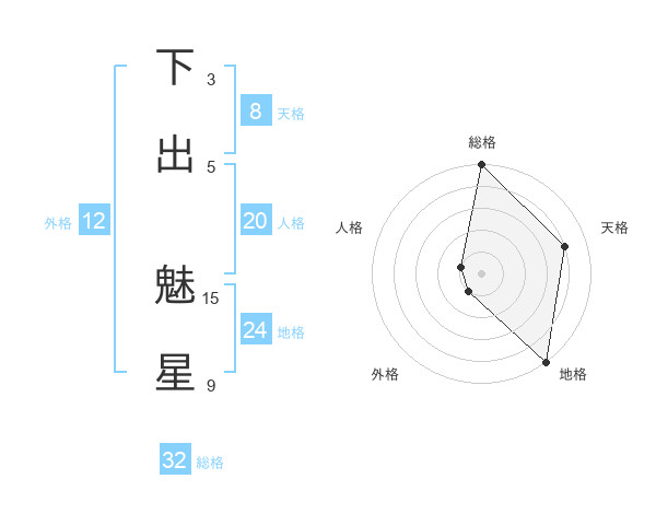 下出 魅星さんの総格は32画の5点!