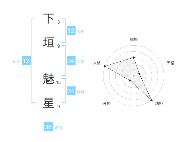 下垣 魅星さんの外格は12画の1点!