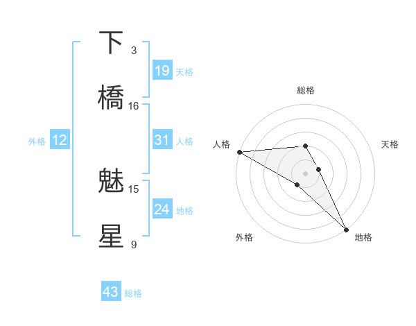 下橋 魅星さんの総格は43画の2点!