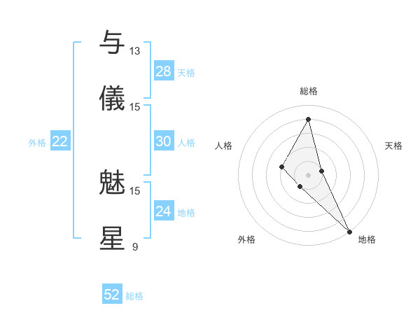 与儀 魅星さんの総格は52画の4点!