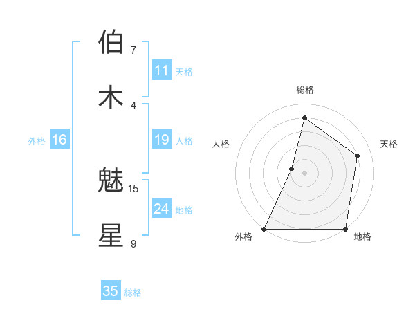 伯木 魅星さんを姓名の画数から五運を鑑定