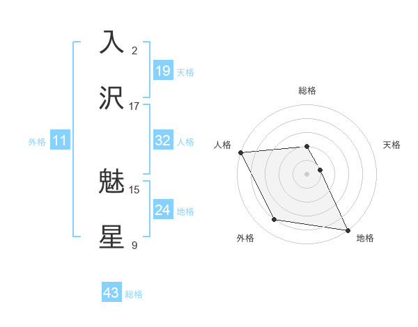 入沢 魅星さんの総格は43画の2点!