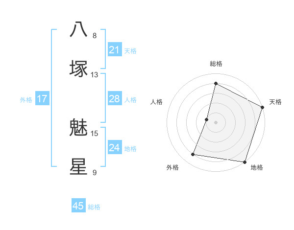 八塚 魅星さんを姓名の画数から五運を鑑定