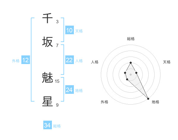 千坂 魅星さんを姓名の画数から五運を鑑定