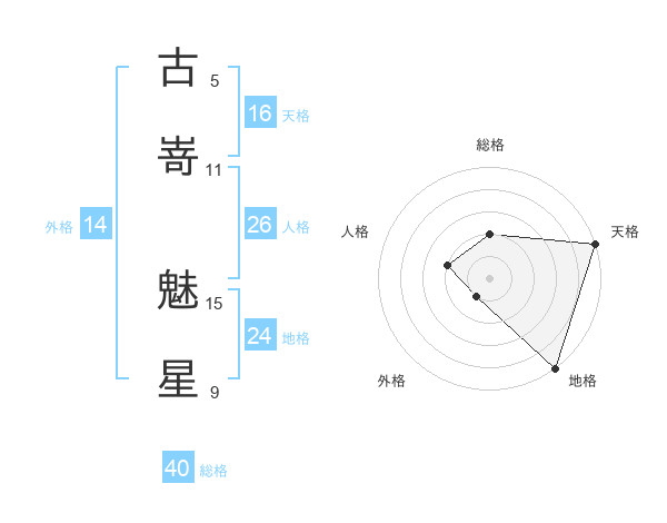 古嵜 魅星さんの天格は16画の5点!