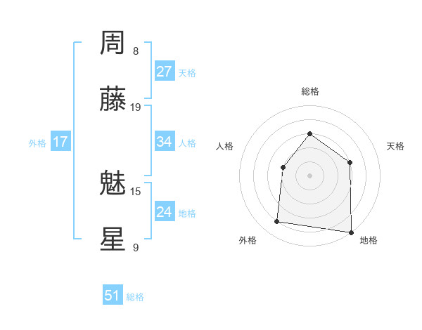 周藤 魅星さんの総格は51画の3点!