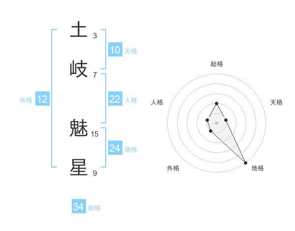 土岐 魅星さんの総格は34画の2点!