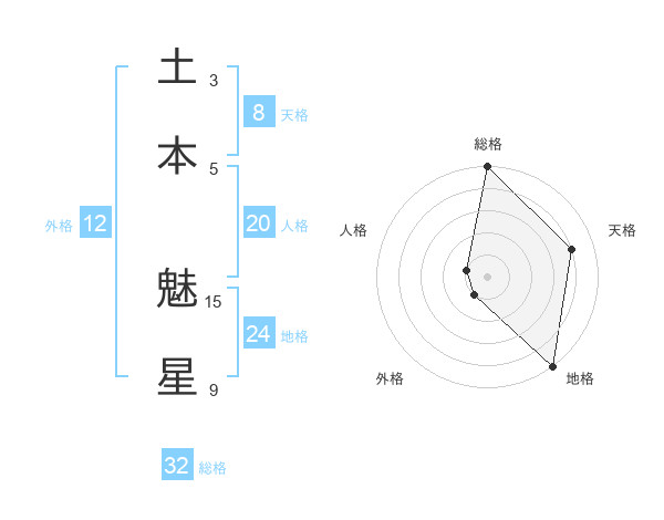 土本 魅星さんの総格は32画の5点!
