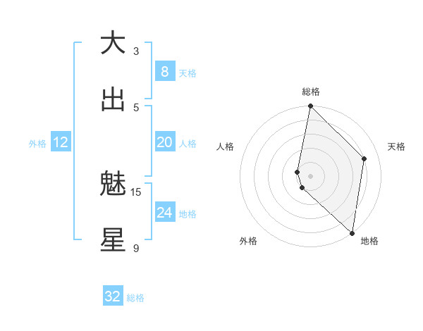 大出 魅星さんの総格は32画の5点!