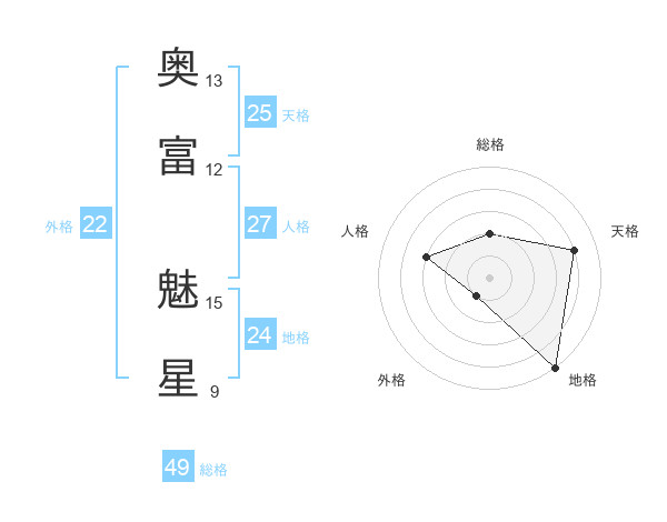 奥富 魅星さんの総格は49画の2点!