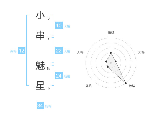 小串 魅星さんの総格は34画の2点!