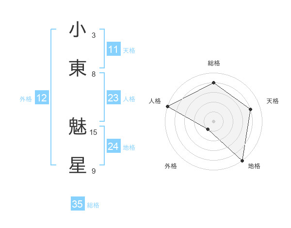 小東 魅星さんの総格は35画の4点!