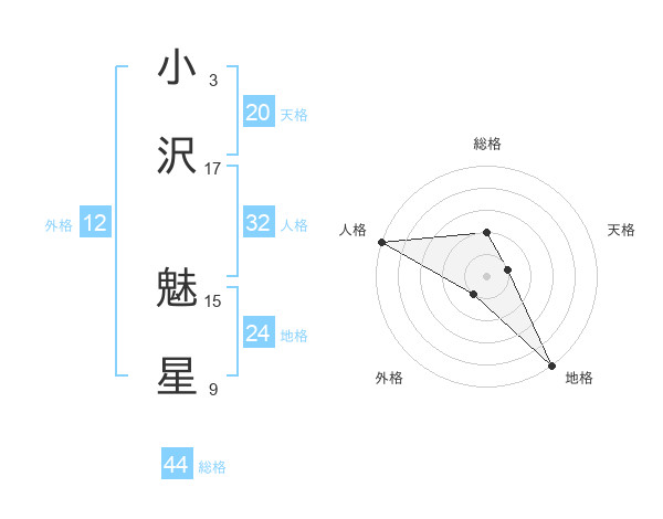 小沢 魅星さんの総格は44画の2点!