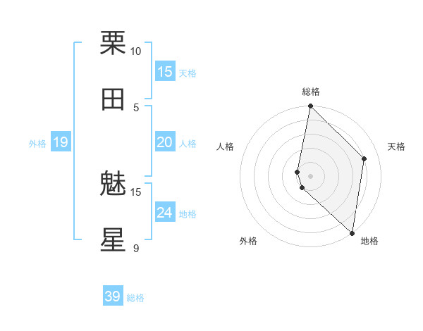 栗田 魅星さんを姓名の画数から五運を鑑定