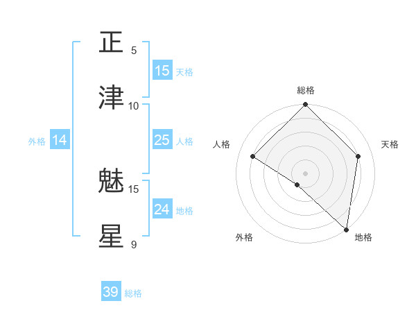 正津 魅星さんの総格は39画の5点!