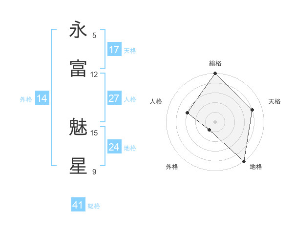 永富 魅星さんの天格は17画の4点!