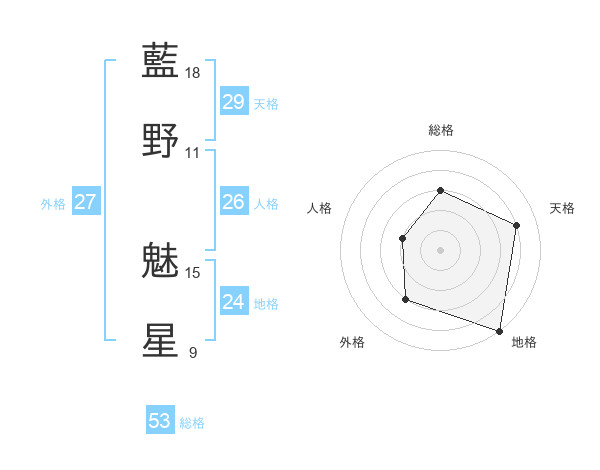 藍野 魅星さんを姓名の画数から五運を鑑定